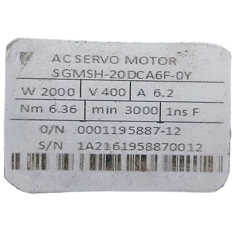 Requiere mas informacion sobre SERVOMOTOR SGMSH20DCA6F 2000W RPM=3000 400V 62A MARCA YAZKAWA? Pulse enviar mensaje para contactar a un asesor.
