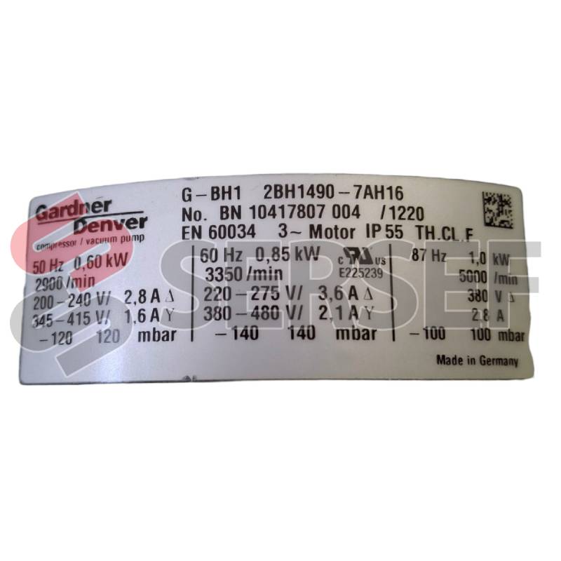 Requiere mas informacion sobre SOPLADOR MODELO 2BH1490-7AH16 KW=0.6/0.85 220/240V 345-415V 50HZ MCA. GARDNER DENVER? Pulse enviar mensaje para contactar a un asesor.