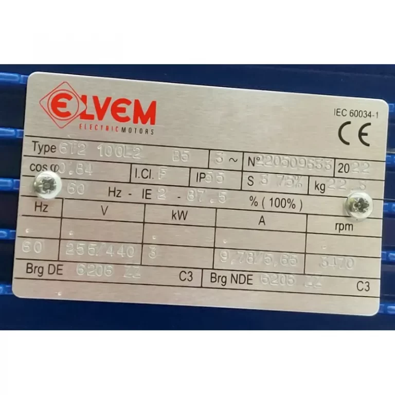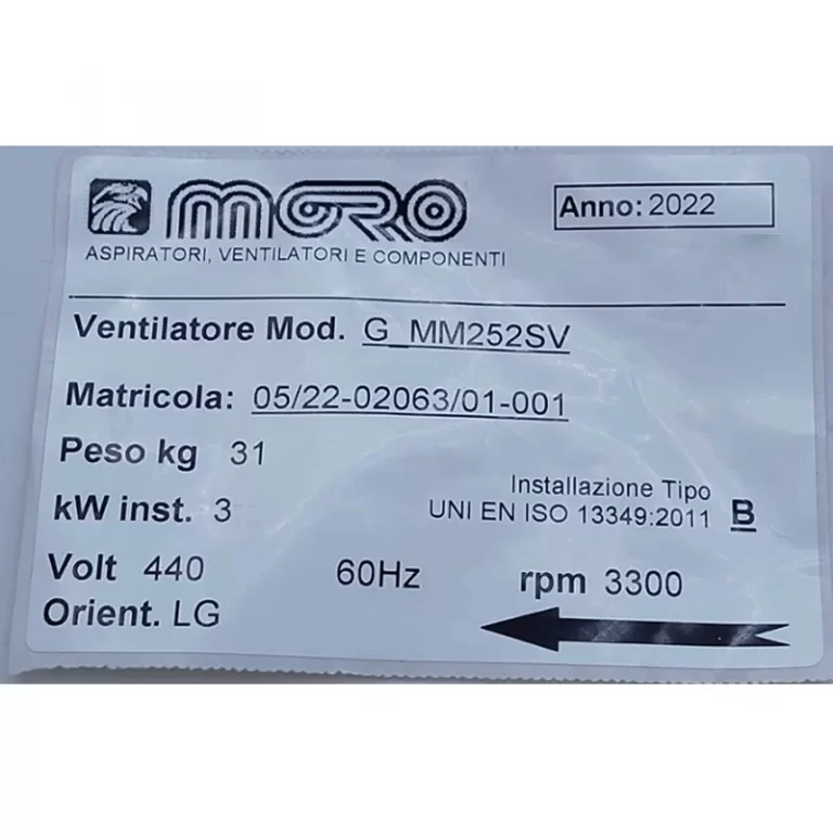 VENTILADOR MODELO G_MM252SV C/MOT 3KW 2P B5 V=440 60HZ IE3 + ASPA MM 252 60HZ MORO RPM=3300, ORIENTACION=LG, (EX. MN250SS) MOTOR 6T2100L2 ELVEM IP55 255/440V 60HZ IMB5