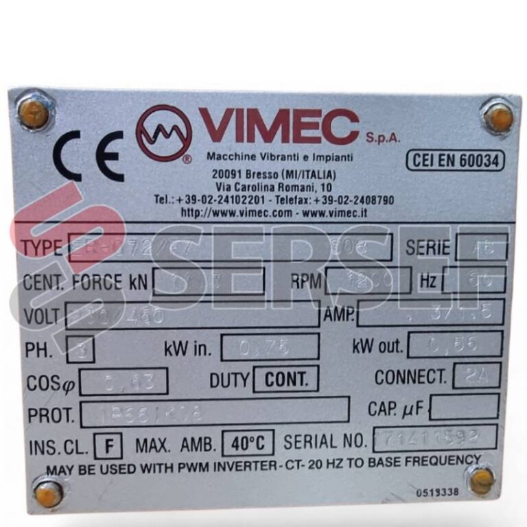 Requiere mas informacion sobre VIBRADOR ER 072/F7 POLOS=6 RPM=1200 V=260/460 HZ=60 IP66 YVER7G0072F MARCA VIMEC? Pulse enviar mensaje para contactar a un asesor.